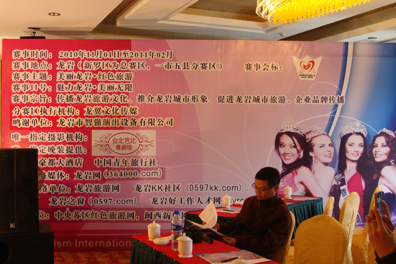 • 11月16日,2010-2011國際旅游小姐大賽龍巖賽區(qū)新聞發(fā)布會在龍巖市新羅區(qū)西方財富大酒店舉行,宣布龍巖首屆國際旅游小姐大賽已正式啟動,即日接受報名。