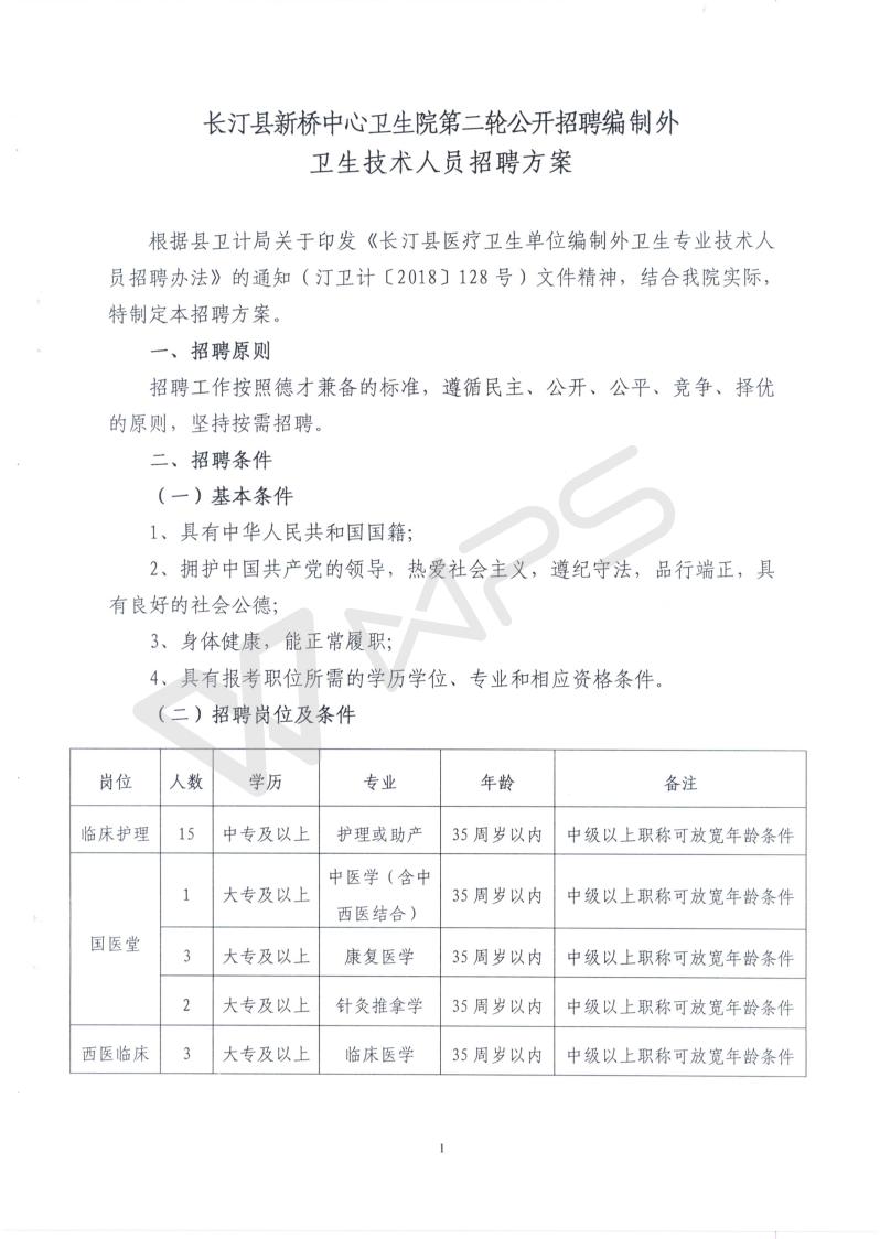 您當前的位置:首頁 > 長汀國有企事業(yè) > 長汀縣新橋中心衛(wèi)生院第二輪公開招聘編制外衛(wèi)生技術人員招聘方案