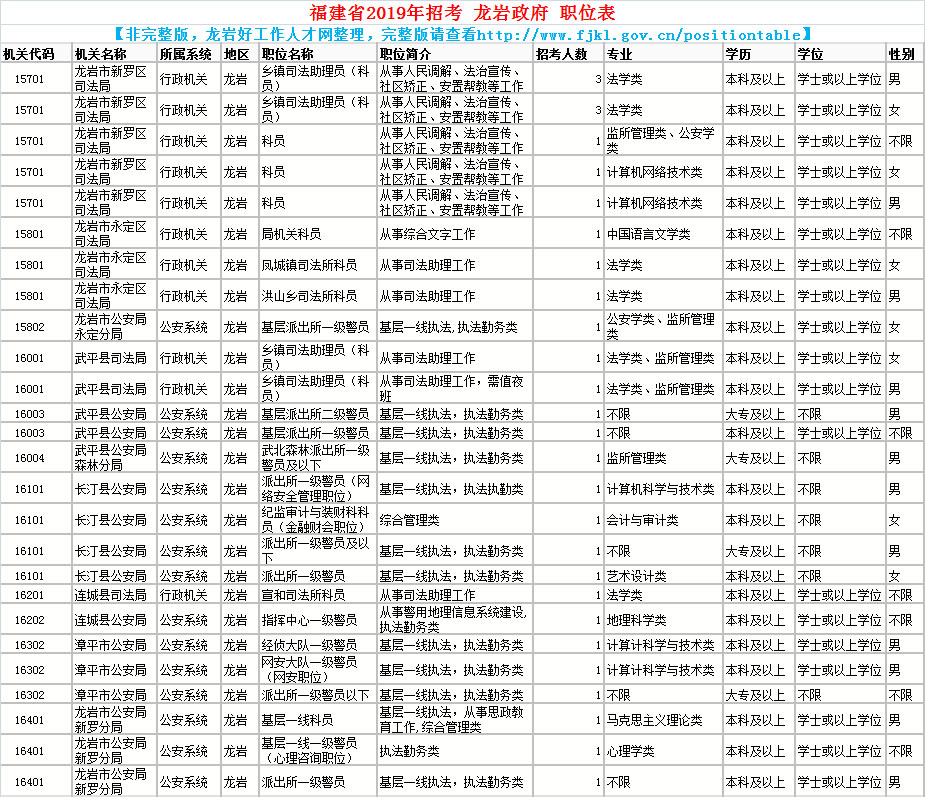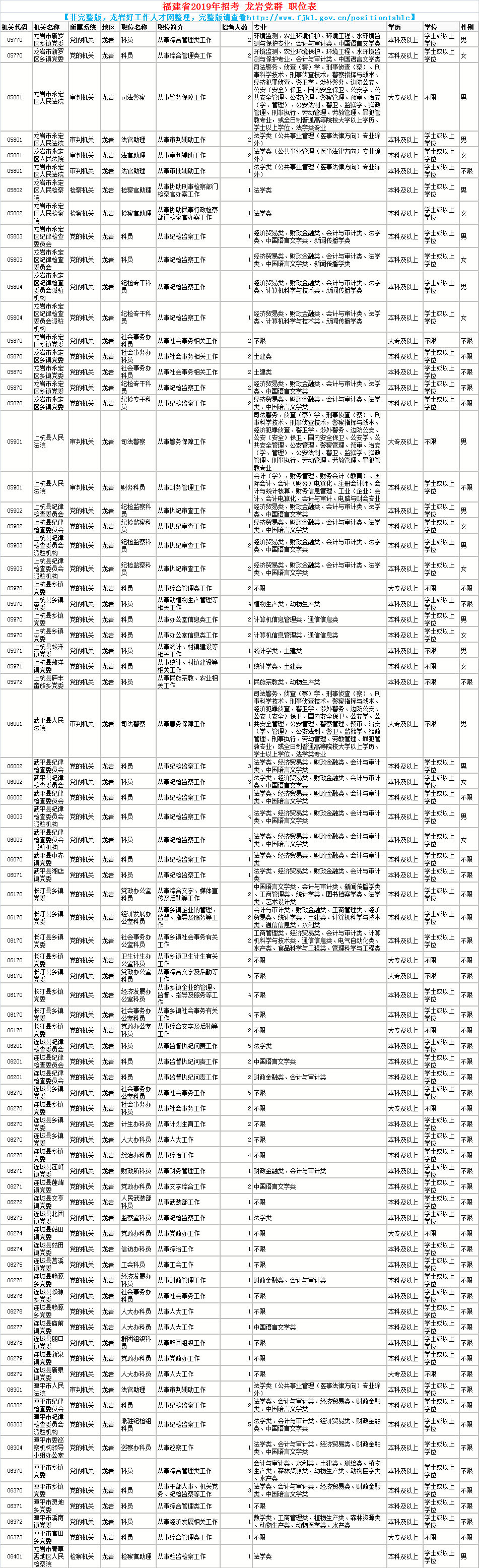 《福建省2019年度考試錄用公務(wù)員招考職位表》完整版查看地址:http://www.fjkl.gov.cn/positiontable