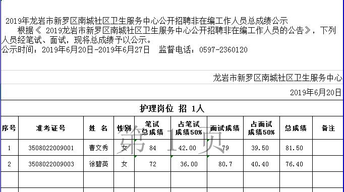 您當(dāng)前的位置:首頁 > 新羅區(qū)國有企事業(yè) > 【名單公示】 2019年龍巖市新羅區(qū)南城社區(qū)衛(wèi)生服務(wù)中心公開招聘非在編工作人員總成績公示