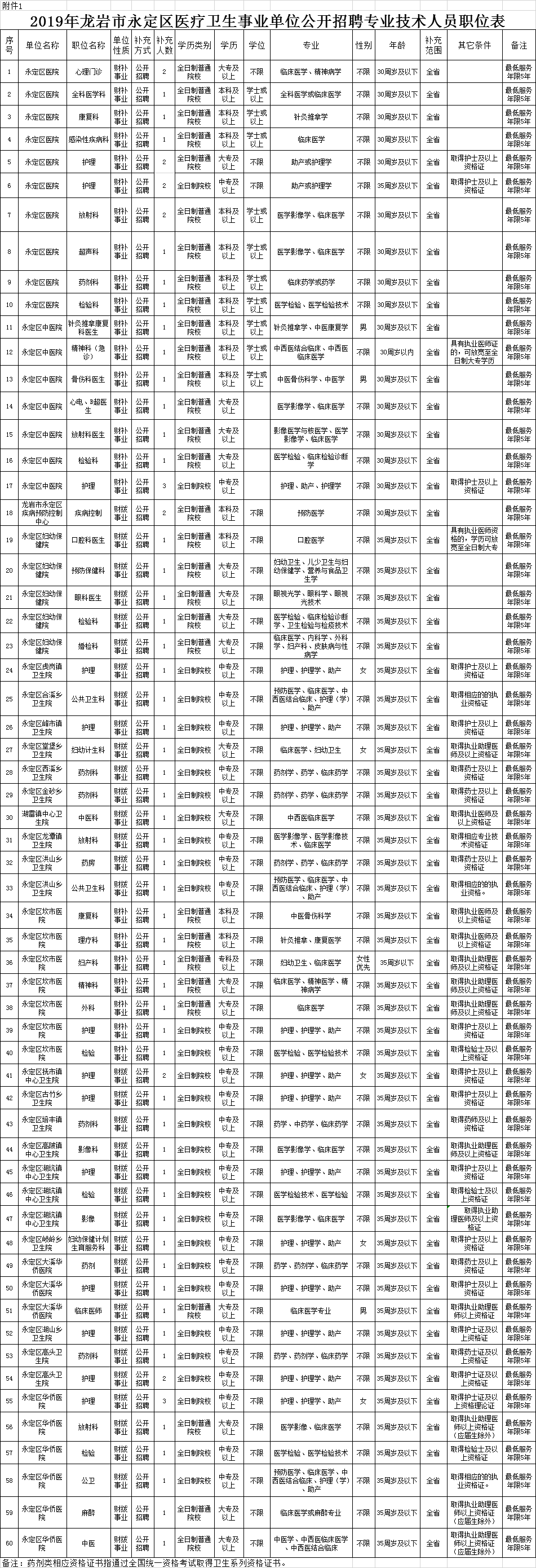 2019年龍巖市永定區(qū)醫(yī)療衛(wèi)生事業(yè)單位公開招聘專業(yè)技術(shù)人員職位表