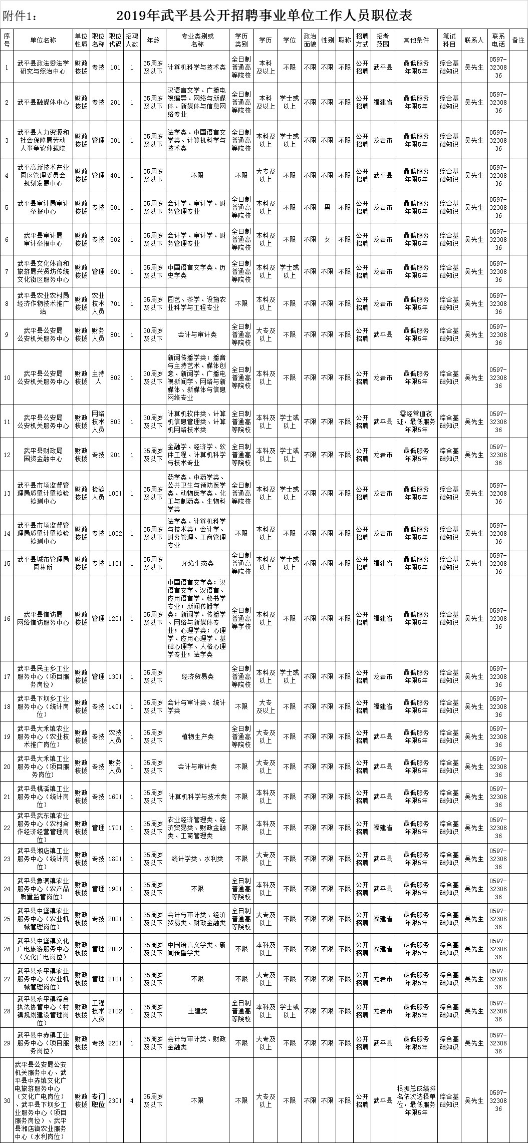 《2019年武平縣公開招聘事業(yè)單位工作人員職位表》