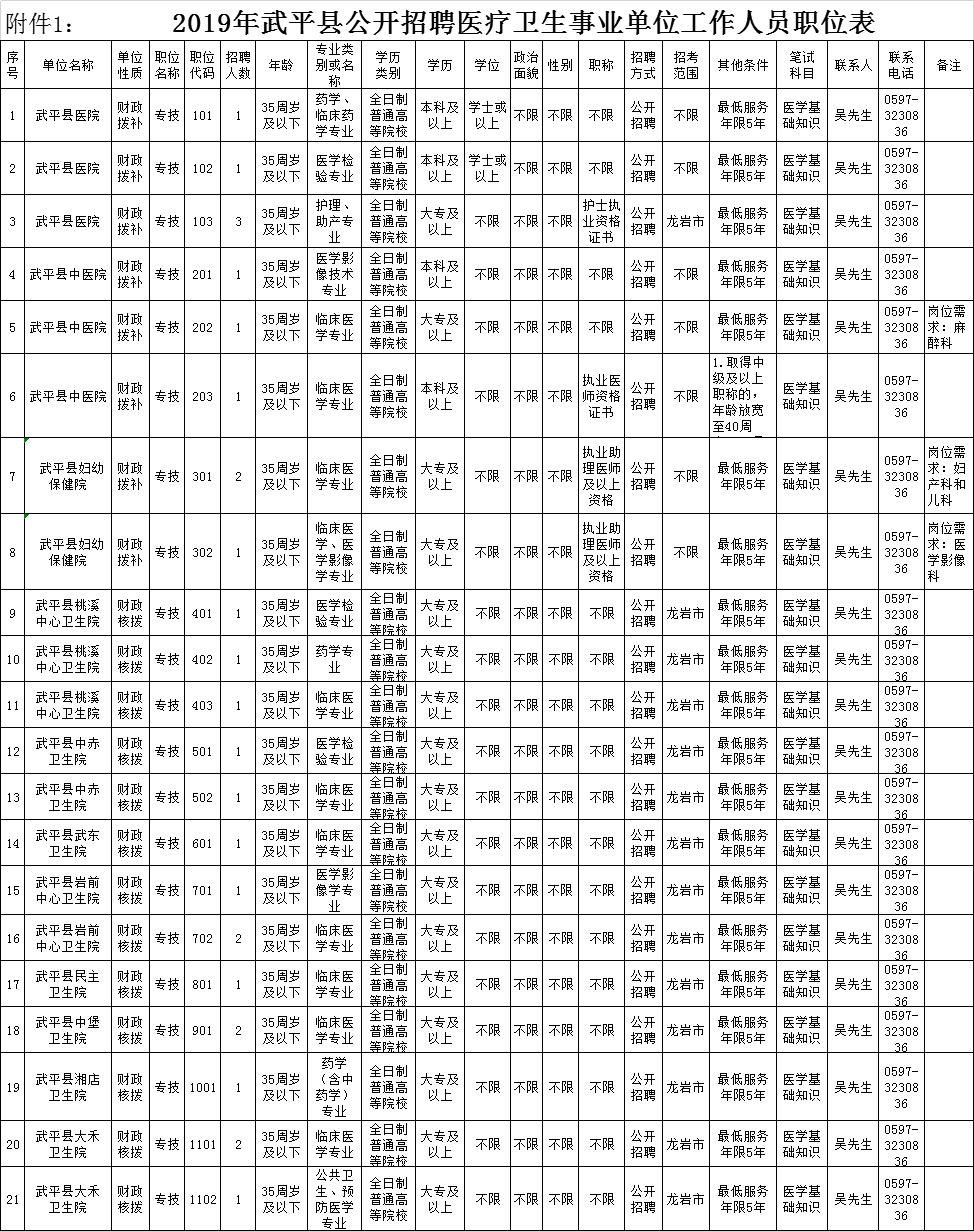 《2019年武平縣公開招聘醫(yī)療衛(wèi)生事業(yè)單位工作人員職位表》