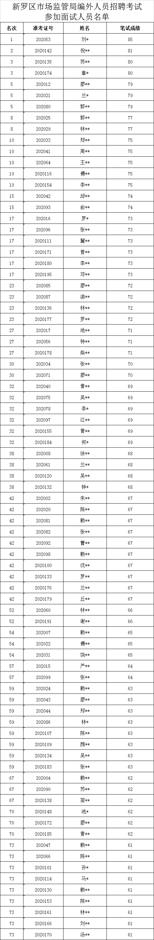 附件1.新羅區(qū)市場監(jiān)管局編外人員招聘考試參加面試人員名單(入圍面試)