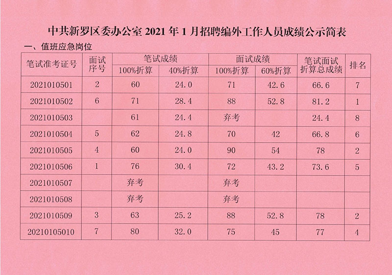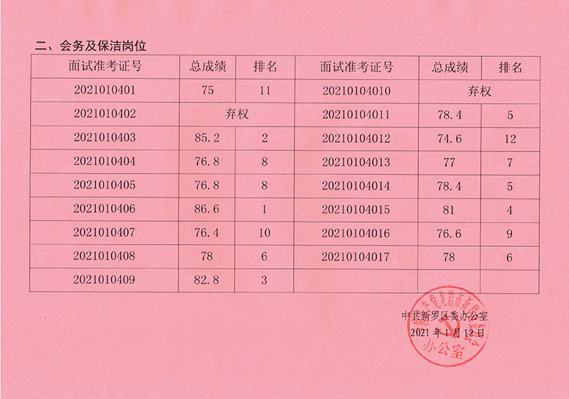 您當前的位置:首頁 > 新羅區(qū)國有企事業(yè) > 【成績公示】中共新羅區(qū)委辦公室2021年1月招聘編外工作人員成績公示