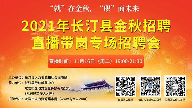 • 【直播回放】2021年長汀縣金秋招聘直播帶崗專場招聘會