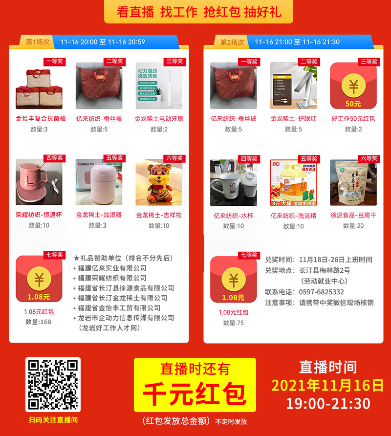 (一)請參加直播的用人單位派1名工作人員于11月16日下午14:30前準(zhǔn)時到達(dá)長汀縣人力資源和社會保障局簽到,領(lǐng)取相關(guān)材料后準(zhǔn)備參加招聘會。