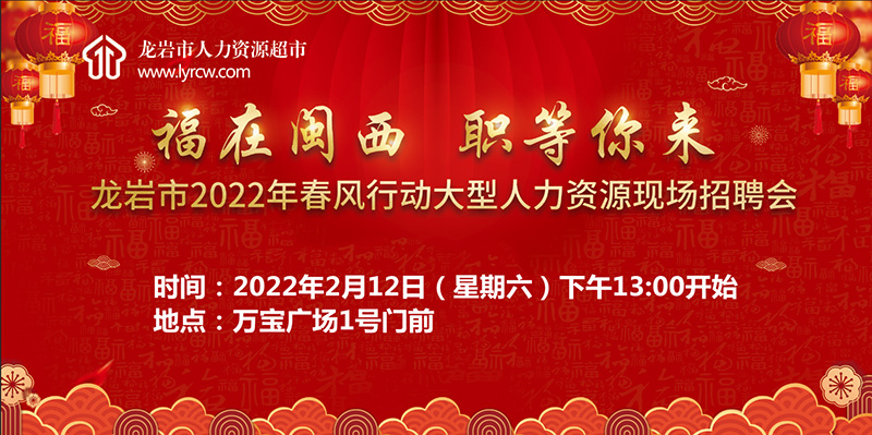 • 【正月十二下午】龍巖市2022年“福在閩西 職等你來”春風行動大型人力資源現(xiàn)場招聘會