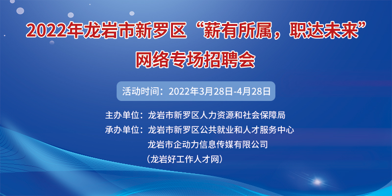 • 歡迎參加2022年龍巖市新羅區(qū)“薪有所屬,職達未來”網(wǎng)絡(luò)專場招聘會