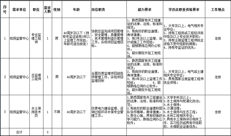 • 龍巖電力勘察設計院有限公司公開招聘工作人員公告