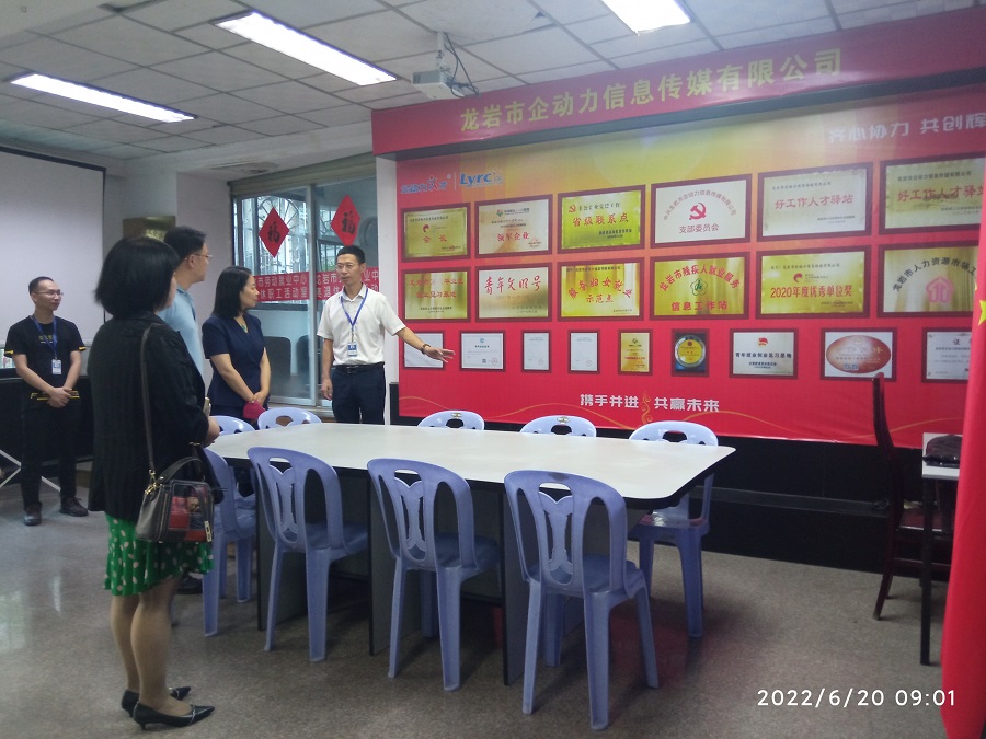 •    6月20日上午,廈門(mén)市職介中心考察組蒞臨龍巖市人力資源協(xié)會(huì)會(huì)長(zhǎng)單位(企動(dòng)力好工作人才網(wǎng))參觀、學(xué)習(xí)、交流,會(huì)長(zhǎng)張勁華、公司高管陪同。