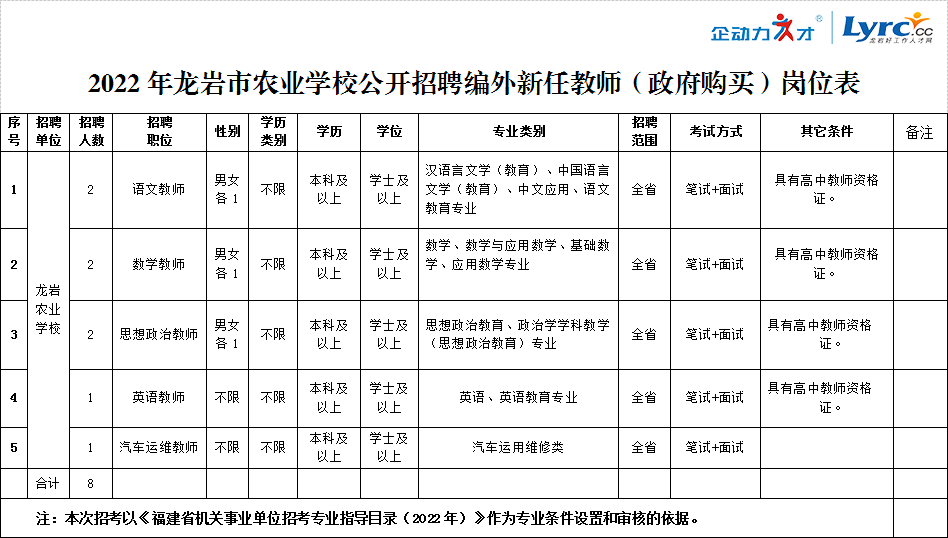 • 【招聘8名】2022年龍巖市農(nóng)業(yè)學(xué)校公開招聘編外新任教師方案
