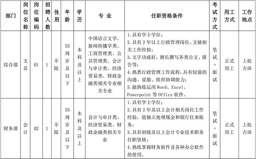 • 【招聘15名】上杭縣文化旅游發(fā)展有限公司(古田建發(fā)公司)關(guān)于公開招聘所屬企業(yè)工作人員的公告