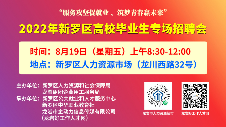 • 【8月19日招聘會名單】2022年新羅區(qū)高校畢業(yè)生專場招聘會【第二場:8月19日】