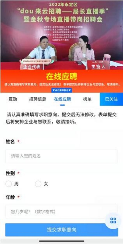 • 2022年永定區(qū)“dou 來云招聘--局長直播季”暨金秋專場直播帶崗招聘會圓滿完成