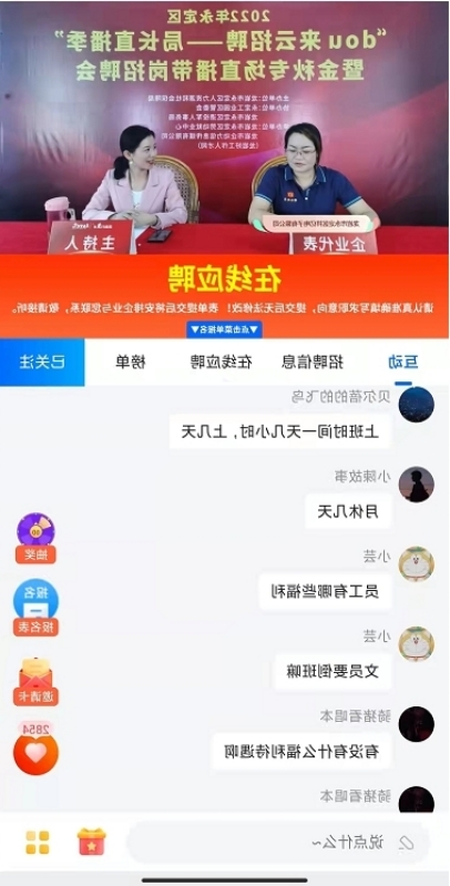 此次線上招聘會結合抖音平臺云招聘優(yōu)勢,龍巖市永定區(qū)人力資源和社會保障局副局長盧揚元,親臨直播間與求職者通過直播現(xiàn)場互動,為直播間的小伙伴們推介永定區(qū)就業(yè)好政策,助力企業(yè)招工引才。直播主持人與企業(yè)招聘負責人現(xiàn)場積極互動,通過視頻資料全方位地展示企業(yè)的辦公環(huán)境和企業(yè)文化,讓求職者更加全面透徹地了解招聘單位的情況。