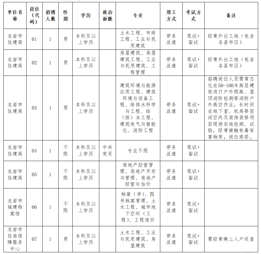 • 【招聘7名】龍巖市住房和城鄉(xiāng)建設(shè)局關(guān)于公開招聘編外聘用人員的公告