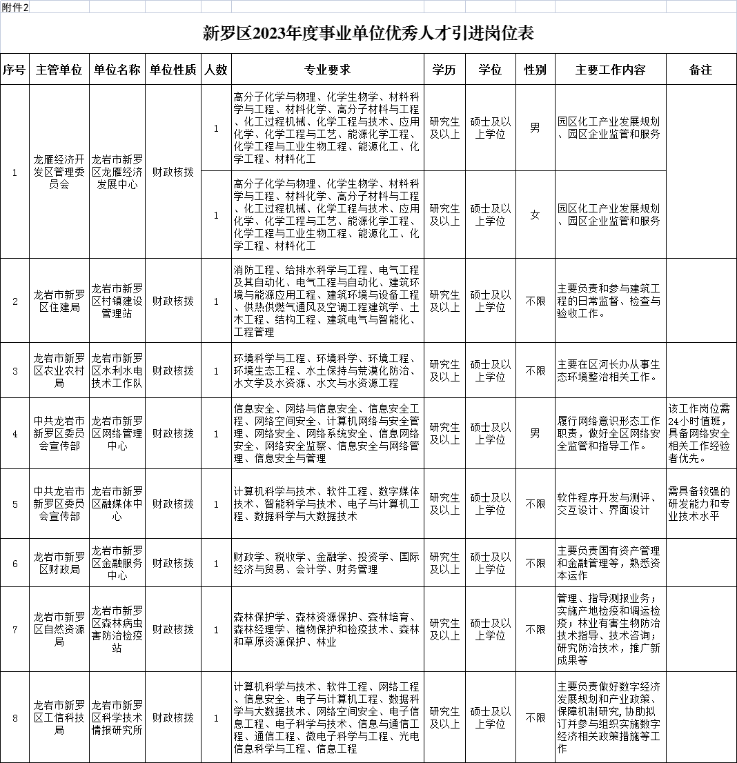 2.《新羅區(qū)2023年度事業(yè)單位優(yōu)秀人才引進(jìn)崗位表》