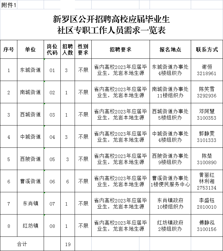 附件1:新羅區(qū)公開招聘高校應屆畢業(yè)生社區(qū)專職工作人員需求一覽表