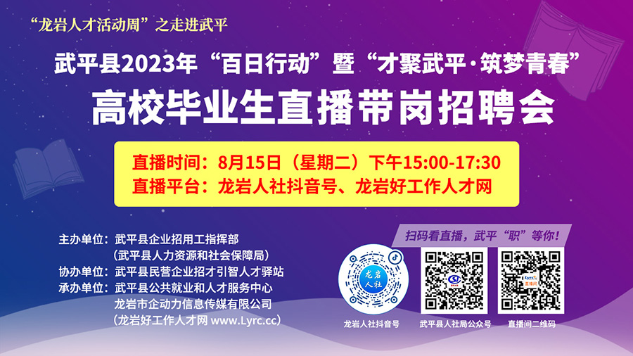 • 【直播回放】武平縣2023年“百日行動(dòng)”暨“才聚武平·筑夢青春”高校畢業(yè)生直播帶崗招聘會(huì)公告