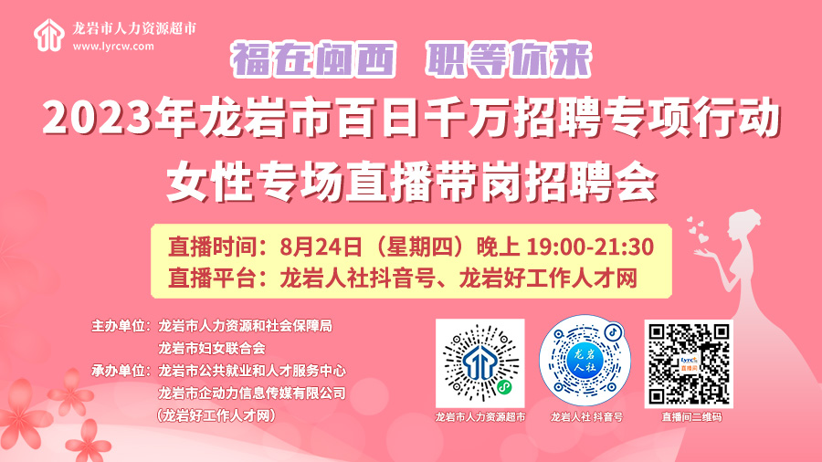• 【直播回放】2023年龍巖市百日千萬招聘專項(xiàng)行動女性專場直播帶崗招聘會