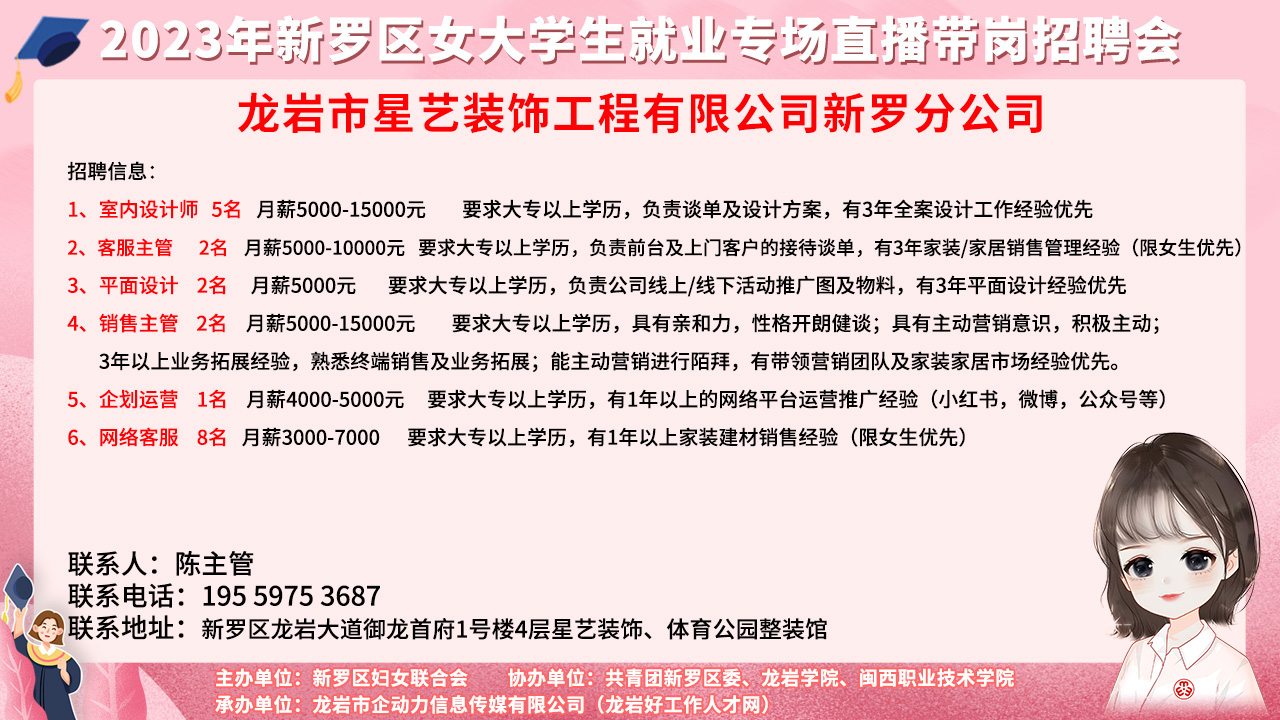 您當前的位置:首頁 > 新聞動態(tài) > 2023年新羅區(qū)女大學生就業(yè)專場直播帶崗招聘會
