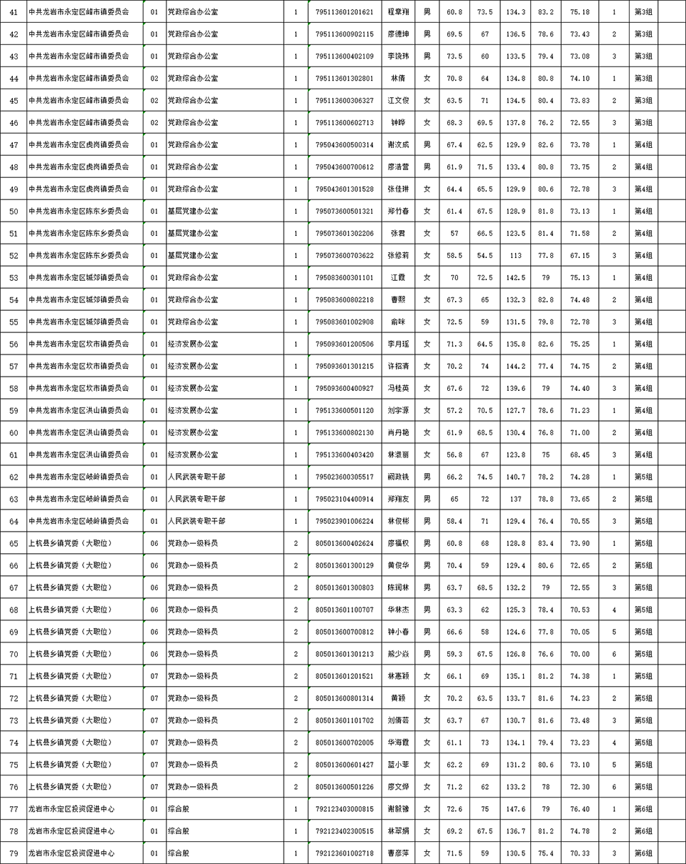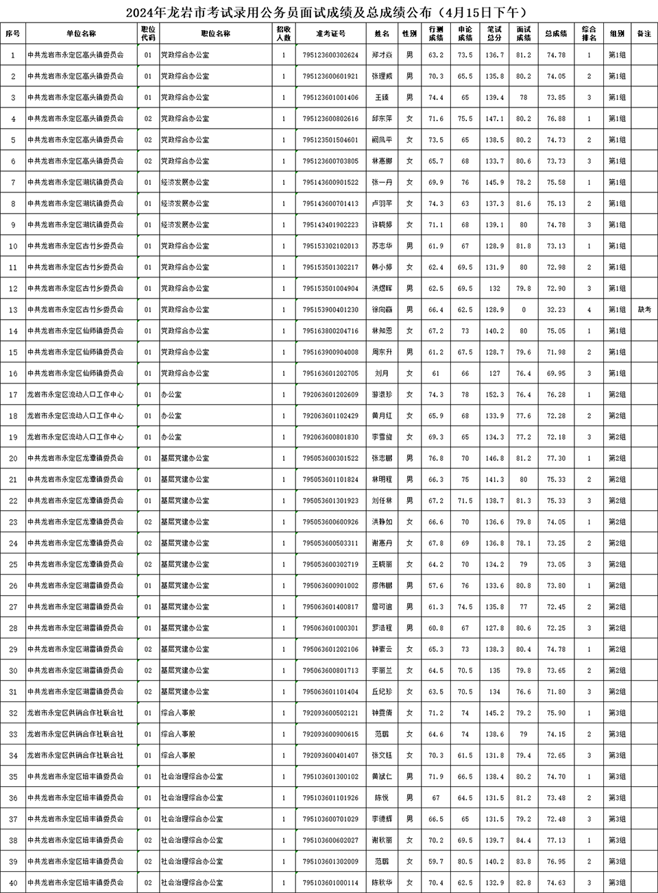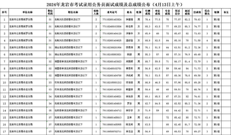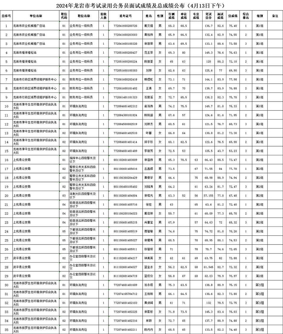 您當(dāng)前的位置:首頁 > 新羅區(qū)國有企事業(yè) > 2024年龍巖市考試錄用公務(wù)員面試成績及總成績公布【匯總4月13日-4月15日】