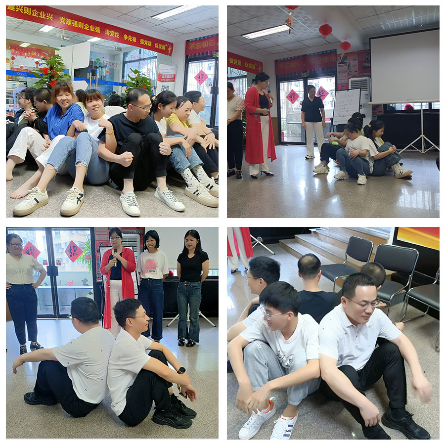 首先進(jìn)行的是坐地起身游戲,挑戰(zhàn)團(tuán)隊(duì)協(xié)作與個(gè)人配合。要求兩人背對(duì)背坐在地上,僅靠彼此支撐站立。初次嘗試?yán)щy重重,但通過(guò)多次努力,逐漸掌握竅門(mén),從兩人合作逐漸擴(kuò)展到多人協(xié)同,展現(xiàn)出了出色的協(xié)作能力和團(tuán)隊(duì)默契。