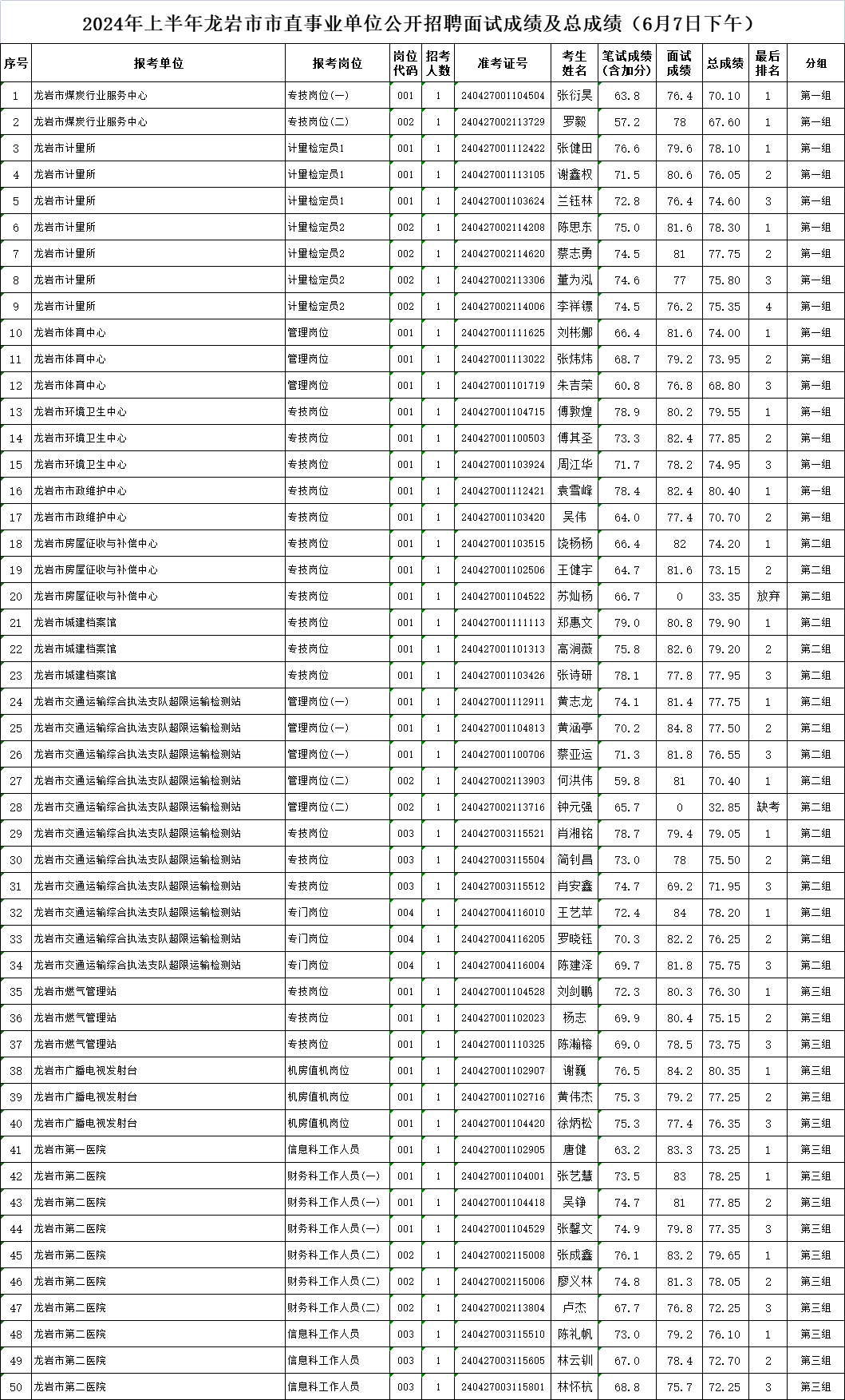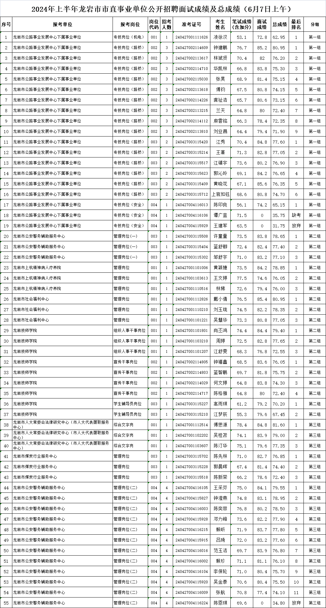 您當(dāng)前的位置:首頁(yè) > 新聞動(dòng)態(tài) > 2024年上半年龍巖市市直事業(yè)單位公開(kāi)招聘工作人員6月7日面試成績(jī)及總成績(jī)公布
