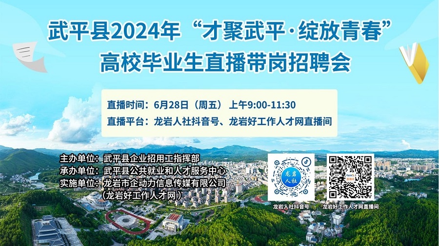 • 武平縣2024年“才聚武平·綻放青春”高校畢業(yè)生直播帶崗招聘會(huì)成功舉辦