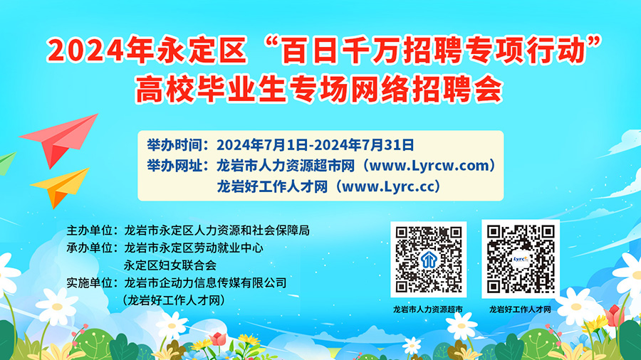 • 2024年永定區(qū)“百日千萬招聘專項行動”高校畢業(yè)生專場網(wǎng)絡招聘會