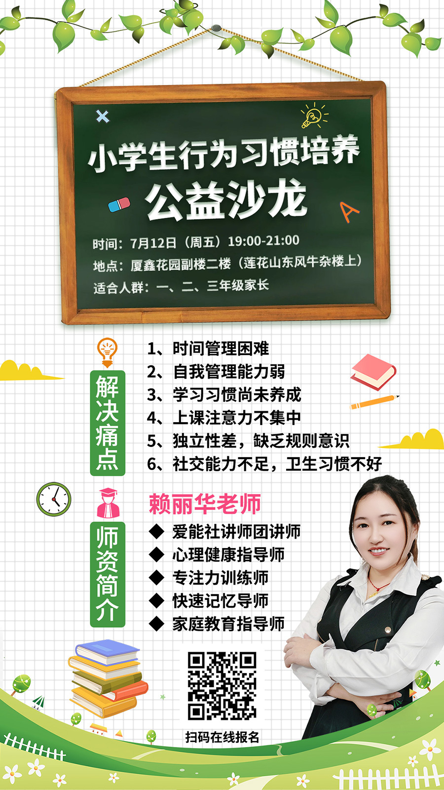 • 【7月12日晚上】小學(xué)生行為習(xí)慣培養(yǎng)公益沙龍