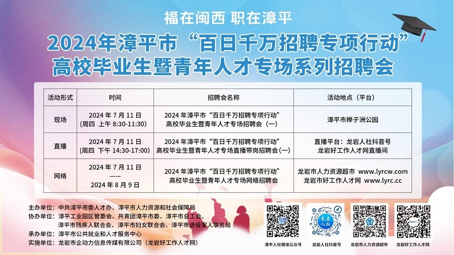 • 【7月19日】2024年新羅區(qū)“百日千萬招聘專項行動”高校畢業(yè)生暨青年人才招聘會