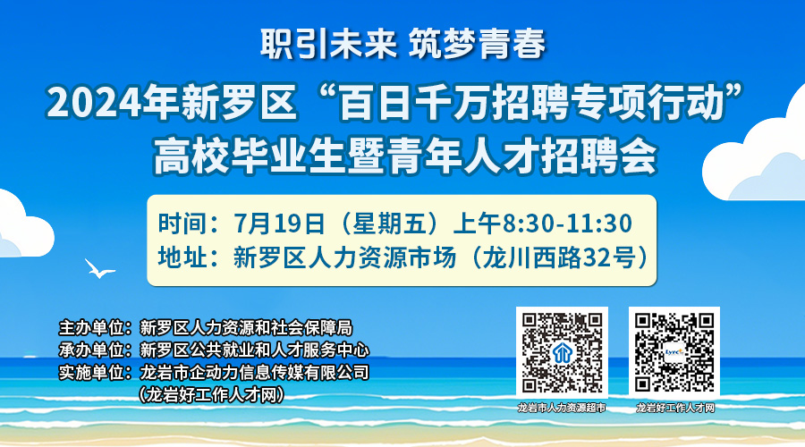 • 【7月19日】2024年新羅區(qū)“百日千萬招聘專項行動”高校畢業(yè)生暨青年人才招聘會