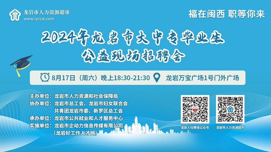 • 發(fā)布時(shí)間:2024/8/14 11:58:48  |  來源:龍巖好工作人才網(wǎng)  |  已瀏覽 人次