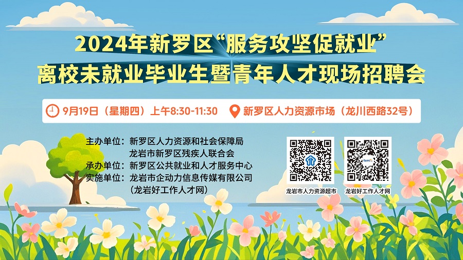 • 【9月19日】 2024年新羅區(qū)“服務(wù)攻堅促就業(yè)”離校未就業(yè)畢業(yè)生暨青年人才現(xiàn)場招聘會