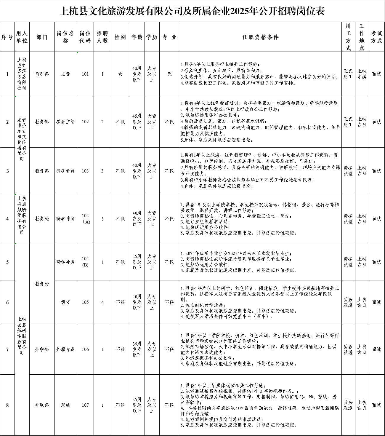 上杭縣文化旅游發(fā)展有限公司(上杭古田建設(shè)發(fā)展公司)系龍巖市杭川實(shí)業(yè)集團(tuán)有限公司下屬國有獨(dú)資企業(yè),F(xiàn)因業(yè)務(wù)拓展需要,決定面向社會公開招聘所屬企業(yè)部分崗位工作人員。現(xiàn)將有關(guān)招聘事項(xiàng)公告如下: