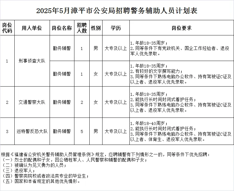 - 【招聘9人】漳平市公安局招聘警務(wù)輔助人員公告