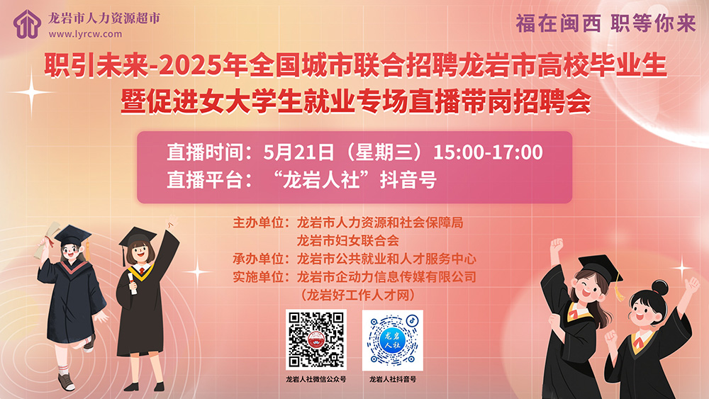 職引未來—2025年全國城市聯(lián)合招聘龍巖市高校畢業(yè)生暨促進(jìn)女大學(xué)生就業(yè)專場直播帶崗招聘會
