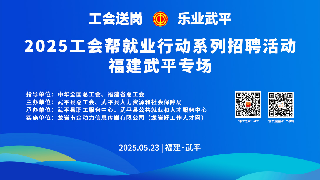 為落實(shí)省委和全總關(guān)于穩(wěn)就業(yè)促就業(yè)工作部署,不斷完善工會(huì)就業(yè)創(chuàng)業(yè)服務(wù)體系,助力民營(yíng)企業(yè)穩(wěn)工穩(wěn)崗,打造“工會(huì)幫就業(yè)”工作品牌,根據(jù)《龍巖市總工會(huì)辦公室關(guān)于鞏固深化“工會(huì)送崗、樂(lè)業(yè)龍巖”專項(xiàng)工作的通知》要求,武平縣總工會(huì)、縣人社局決定舉辦“工會(huì)送崗·樂(lè)業(yè)武平”2025工會(huì)幫就業(yè)行動(dòng)系列招聘活動(dòng)福建武平專場(chǎng)。