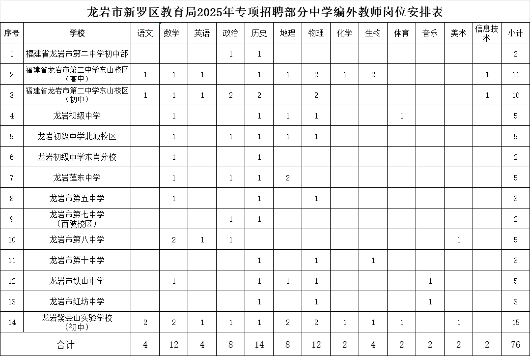 附件:龍巖市新羅區(qū)教育局2025年專項(xiàng)招聘部分中學(xué)編外教師崗位安排表