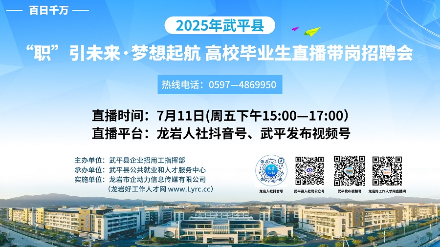 直播平臺(tái):龍巖人社抖音號(hào)/龍巖好工作人才網(wǎng)直播間
