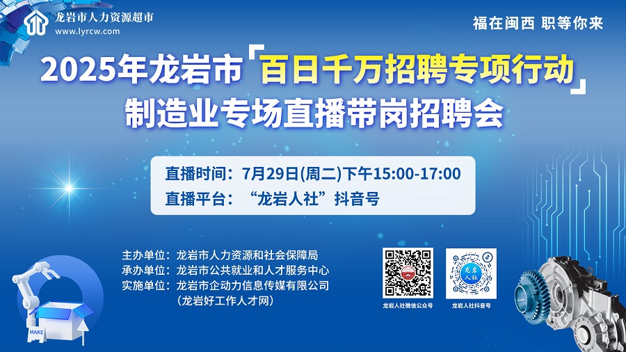 直播地點(diǎn):龍巖市人力資源超市(閩西交易城A6幢三層)
