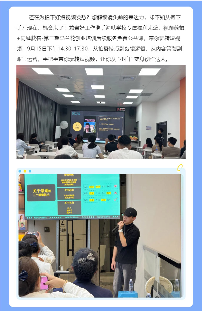 上一篇: 【9月18日免費(fèi)培訓(xùn)】2025年新羅區(qū)總工會(huì)短視頻剪輯創(chuàng)業(yè)培訓(xùn)