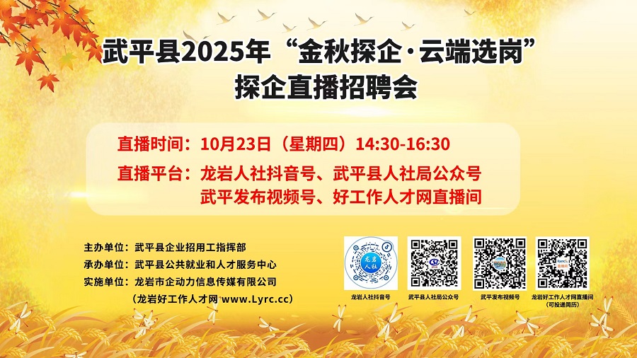 武平縣2025年“金秋探企·云端選崗”探企直播招聘會