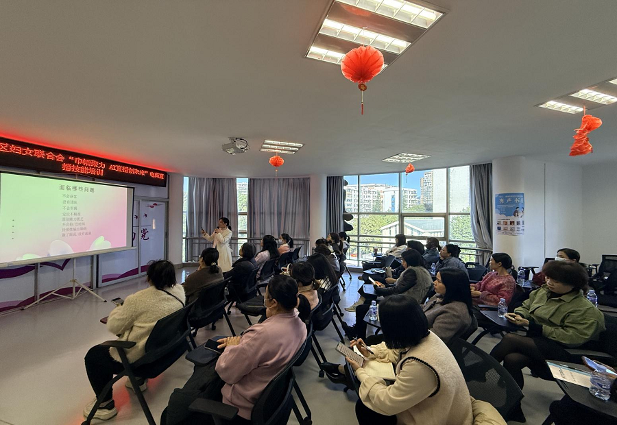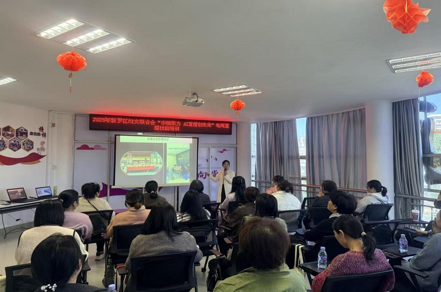 數(shù)字經(jīng)濟(jì)蓬勃發(fā)展,AI技術(shù)與電商直播深度融合,催生創(chuàng)業(yè)就業(yè)新賽道。女性憑借細(xì)膩、耐心、善溝通的天然優(yōu)勢(shì),在直播電商領(lǐng)域潛力凸顯,成為“她經(jīng)濟(jì)”發(fā)展核心力量。為助力新羅區(qū)女性把握數(shù)字時(shí)代機(jī)遇,破解傳統(tǒng)創(chuàng)業(yè)瓶頸、拓寬增收渠道,新羅區(qū)婦女聯(lián)合會(huì)于2025年11月21日成功舉辦“巾幗聚力 AI 直播創(chuàng)未來(lái)”電商直播技能培訓(xùn)。活動(dòng)旨在讓更多女性借直播電商實(shí)現(xiàn)自我價(jià)值,以巾幗之力激活消費(fèi)新動(dòng)能,在數(shù)字經(jīng)濟(jì)浪潮中書寫創(chuàng)業(yè)增收新篇章。 本次培訓(xùn)聚焦有AI電商直播創(chuàng)業(yè)意愿的城鄉(xiāng)女性,以及待業(yè)、下崗女性及全職媽媽等群體的發(fā)展需求,打造了一套涵蓋AI電商直播核心領(lǐng)域的課程體系。邀請(qǐng)AI電商直播行業(yè)資深講師手把手教學(xué),每一個(gè)知識(shí)點(diǎn)均緊貼行業(yè)前沿與市場(chǎng)需求,通過(guò)理論與實(shí)踐深度融合,讓每一項(xiàng)技能都力求實(shí)用落地、學(xué)以致用。