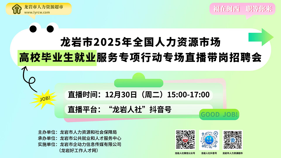 “福在閩西 職等你來”龍巖市2025年全國人力資源市場高校畢業(yè)生就業(yè)服務(wù)專項行動專場直播帶崗招聘會