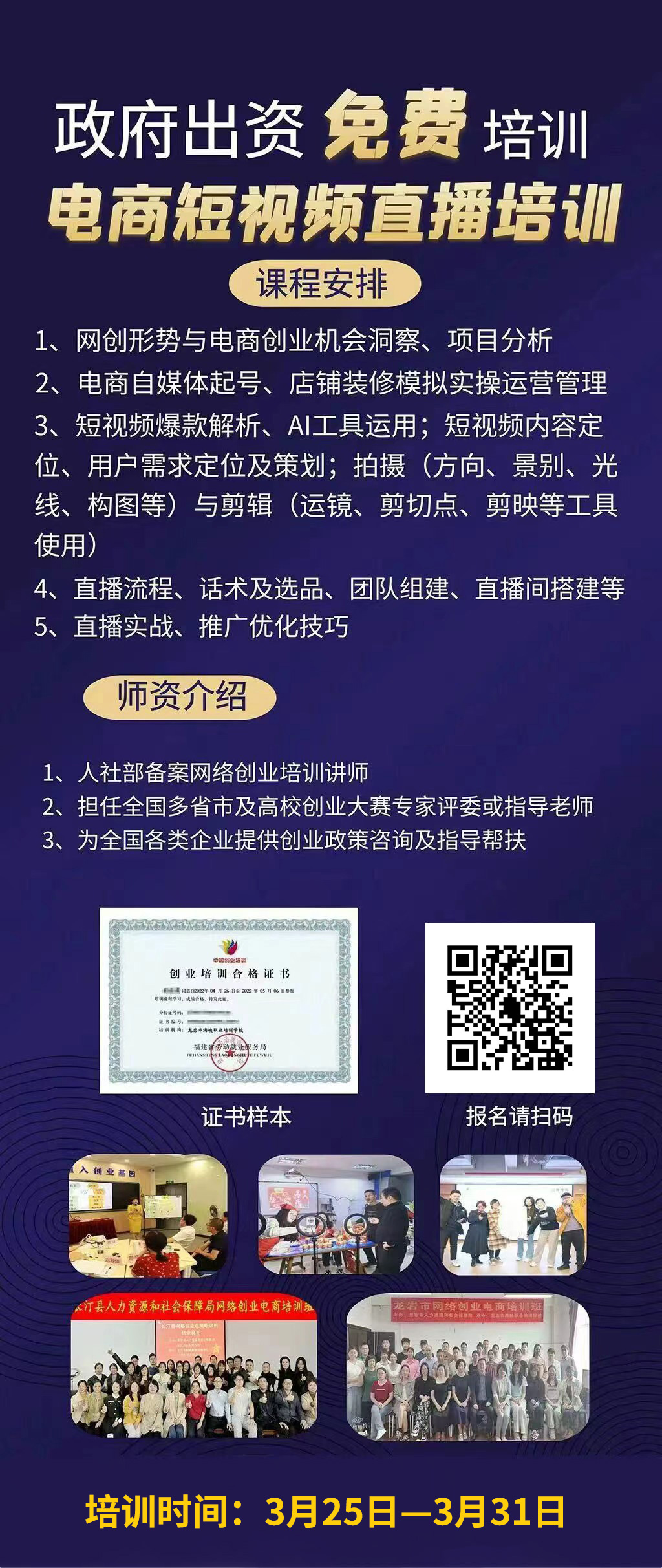 (具體時間以培訓師來巖檔期為準,連續(xù)7天線下面授【非線上】)