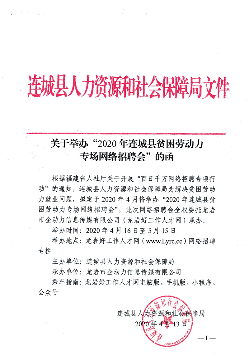 主辦單位: 連城縣人力資源和社會(huì)保障局 承辦單位:龍巖市企動(dòng)力信息傳媒有限公司