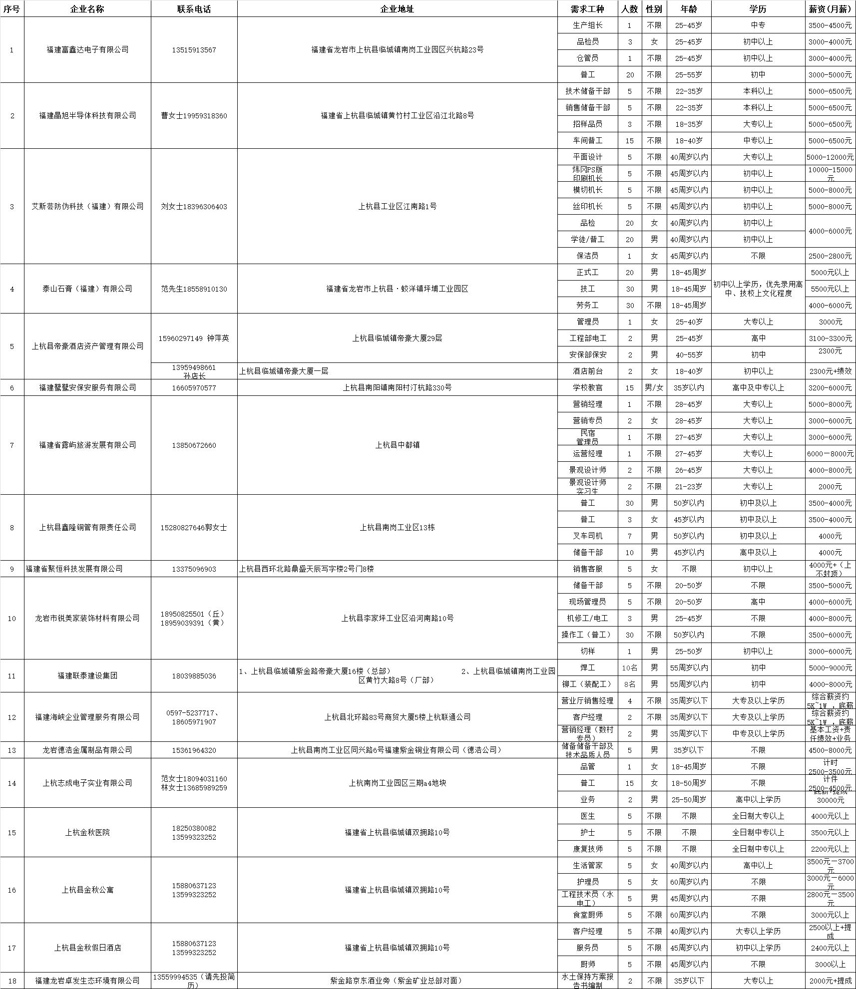 舉辦地點(diǎn): 龍巖市人力資源超市 上杭縣智慧就業(yè)平臺(tái) 龍巖好工作人才網(wǎng)